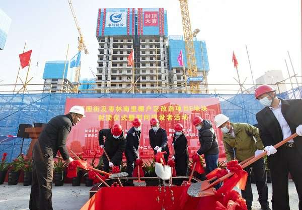 12月22日,伴随着最后一方混凝土浇筑到位,在项目建设、监理、设计等相关单位负责人及集团公司领导的共同见证下,乐竟体育·乐竟官方网站-乐竟online(中国)承建的菜园街及枣林南里棚户区改造项目喜迎主体结构封顶。